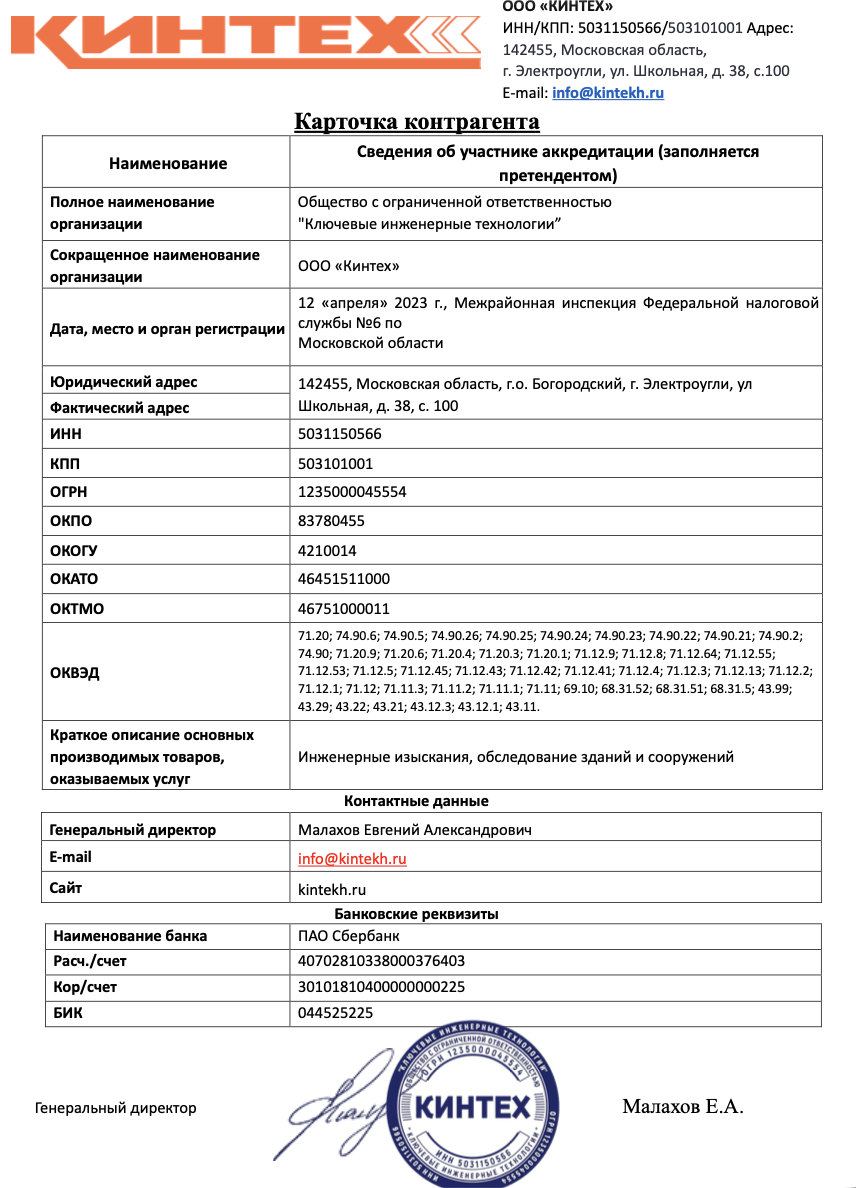 | Сокращенное наименование организации | ООО «Кинтех» | |